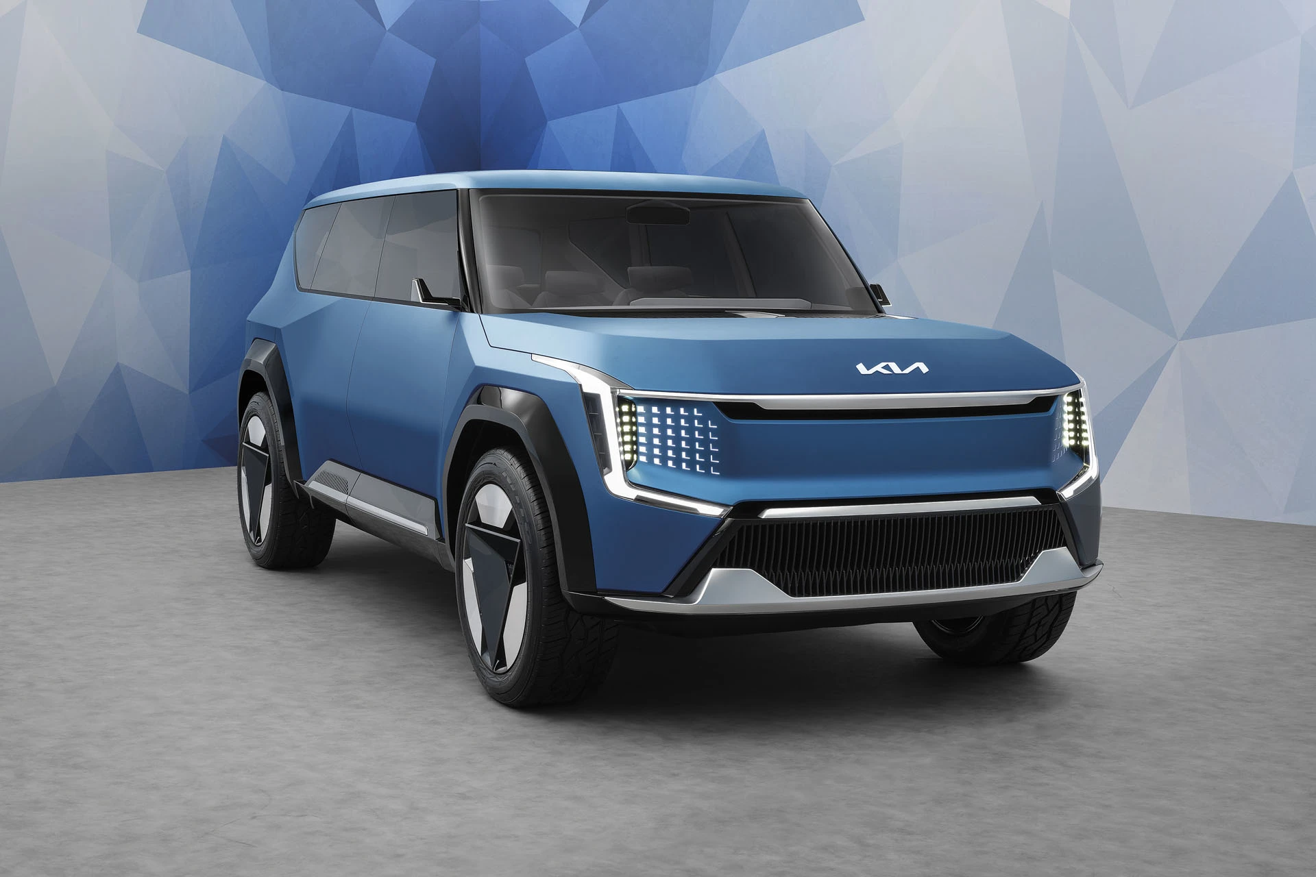 Den er udviklet på baggrund af Opposites United, som er Kias abstrakte designfilosofi. Med inspiration fra ”Bold for Nature”-designelementet i Opposites United er Concept EV9 et udtryk for en eventyrlysten, åben og fritidsorienteret form med et robust og kantet look. Set udefra giver disse proportioner indtryk af en SUV med tre sæderækker og en bil, som er særdeles kompetent, praktisk og klar til en aktiv livsstil.